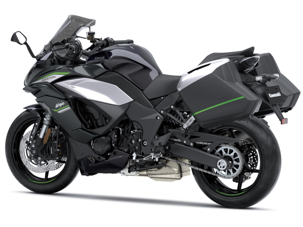 The Ninja 1000SX has character without compromise. Infused with the Ninja spirit craved by discerning solo sportsbike riders, the Ninja 1000SX takes the concept further with SX sport touring versatility to share with a fellow traveler. From traction control to cruise control, the Ninja 1000SX has the tech for the ride. The Ninja 1000SX Tourer Edition comes with a colour-matched 56L one-key pannier system with inner bags, a large clear windscreen, heated grips, a universal phone mount kit, a 12V outlet and a screen protector.