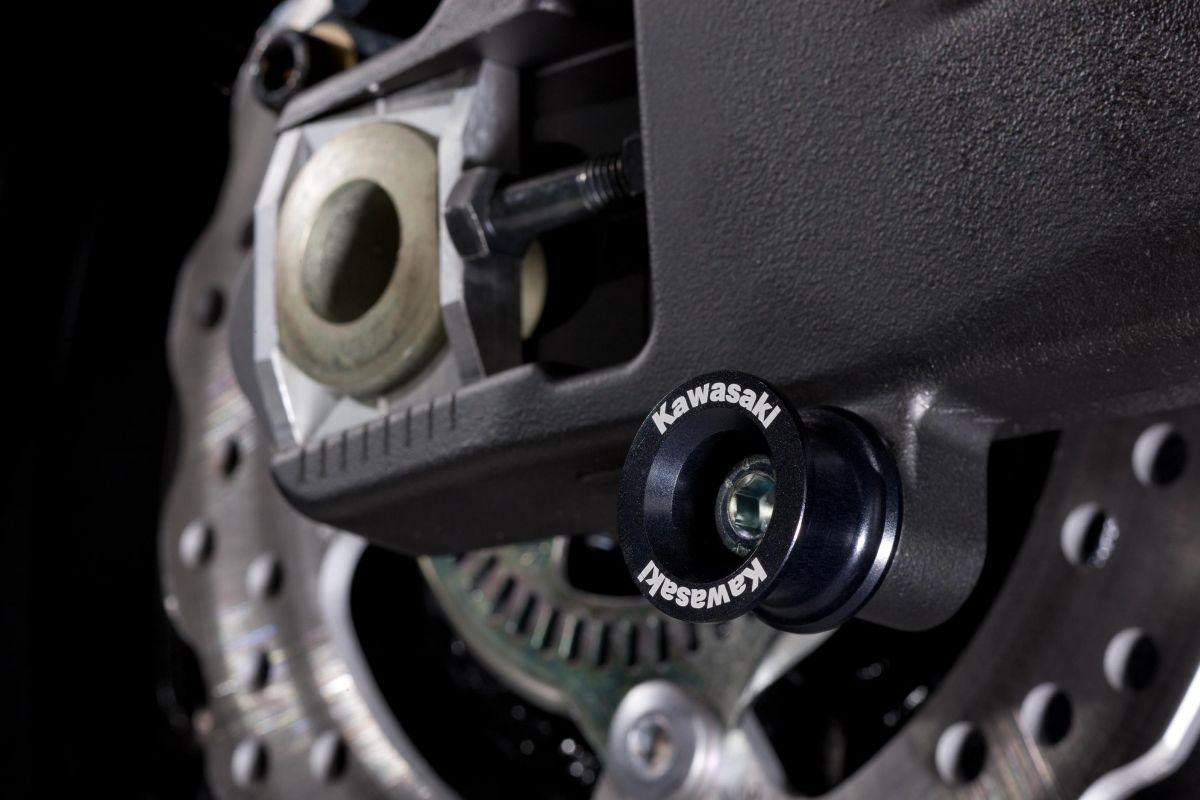 Mounting points for paddock stand, providing stability during maintenance or storage. The bobbins are securely attached to the motorcycle's swingarm, allowing for easy and safe lifting of the bike.